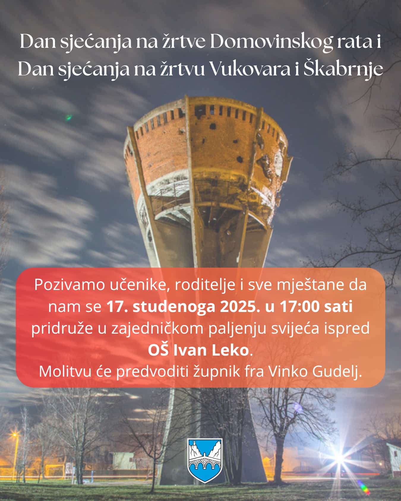 Općina Proložac i OŠ Ivan Leko ovim putem pozivaju učenike, roditelje i sve mještane da nam se 17.studenog u 17.00 sati pridruže u zajedničkom paljenju svijeća ispred škole.