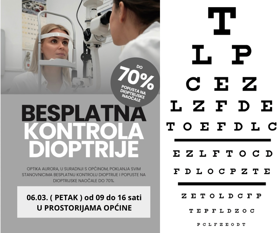 Obavještavamo sve mještane da će se u petak, 06. ožujka, održati akcija besplatne kontrole dioptrije.