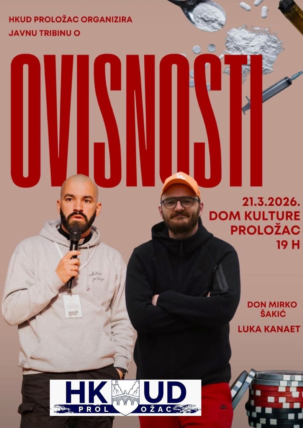 U organizaciji HKUD Proložac, u petak, 21. ožujka 2026. godine, s početkom u 19 sati, u Domu kulture u Prološcu održat će se javna tribina na temu ovisnosti.